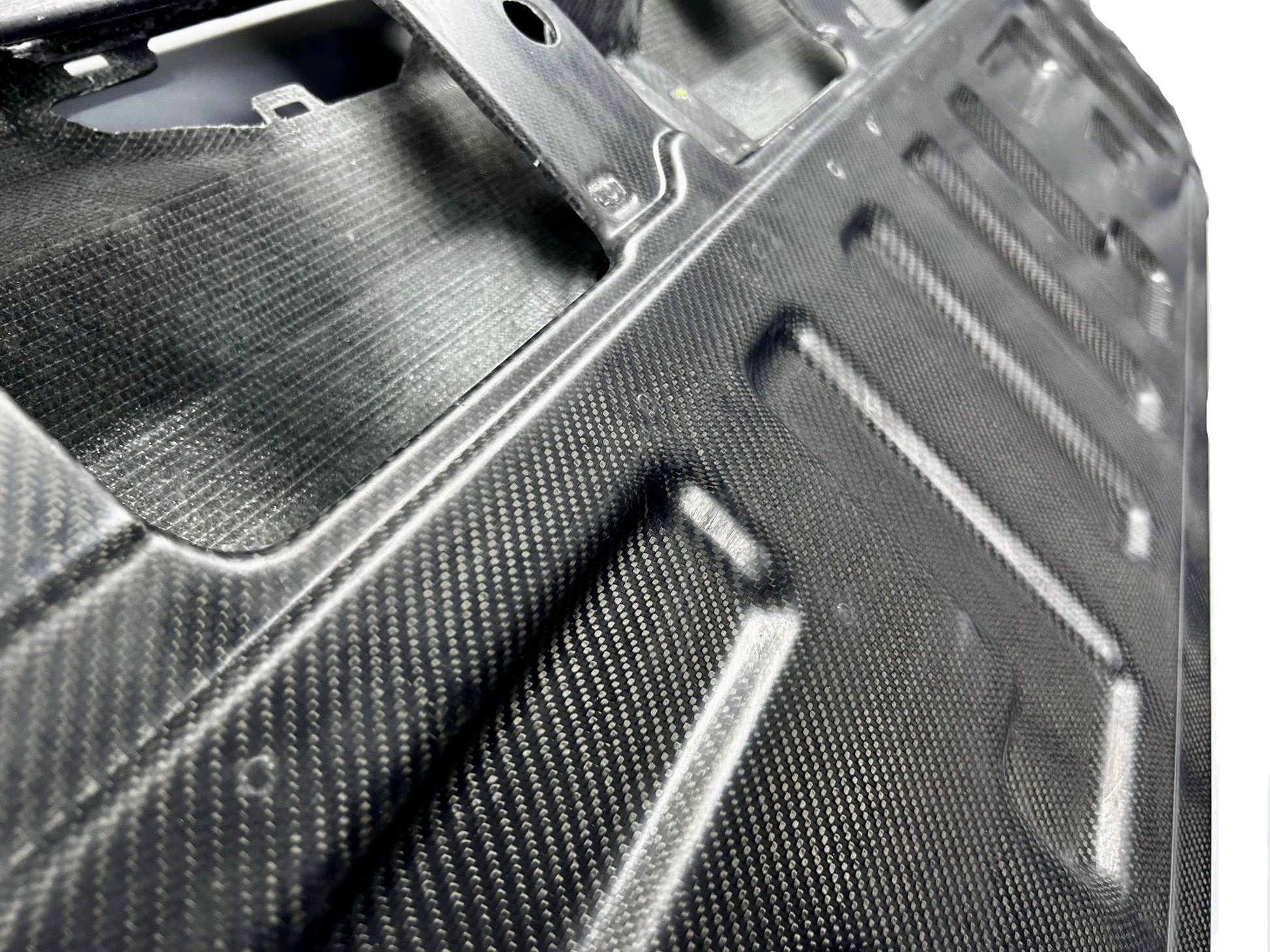 This genuine dual-sided carbon tailgate delivers superior strength and lighter weight save about 30lbs, along with an exceptionally smooth surface finish.