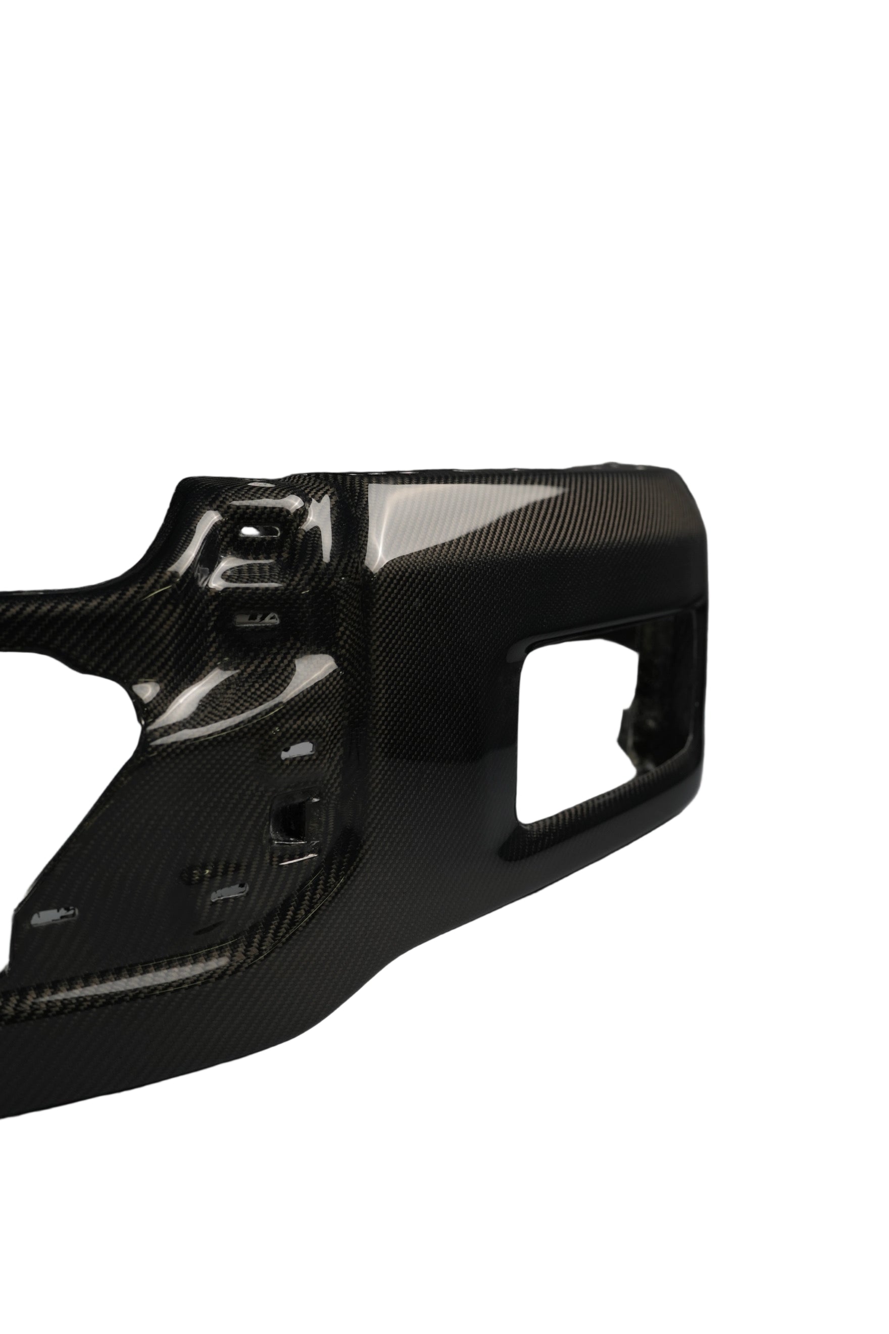 This genuine dual-sided carbon bumper delivers superior strength and lighter weight, along with an exceptionally smooth surface finish.